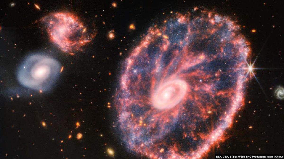 ناسا و آژانس فضایی اروپا اعلامکردند توانایی تلسکوپ جیمز وب در تشخیص نور مادون قرمز به آنها اجازه داده تا از میان «مقادیر عظیمی از غبار داغ» که نمای کهکشان «چرخ گاری» را پنهان میکند این کهکشان را مشاهده کرده و از آن تصویر بگیرد.