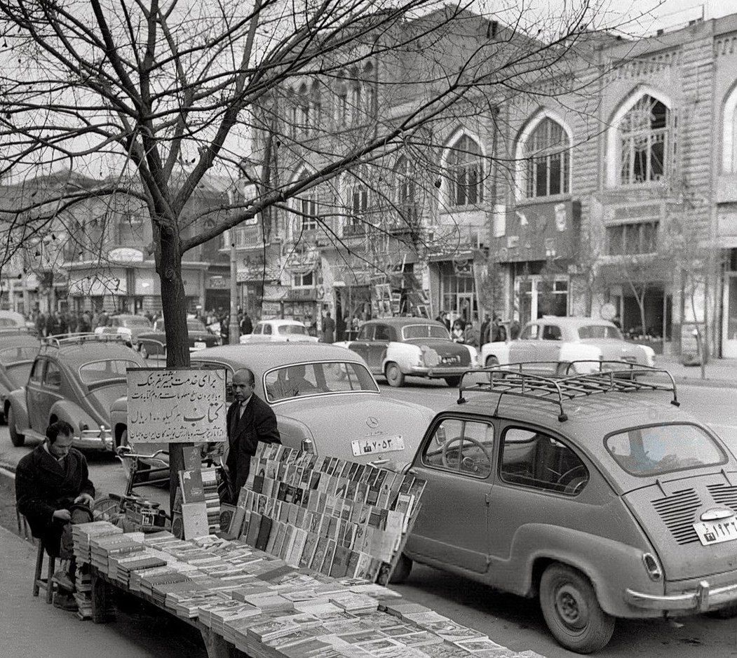این عکس در سال ۱۳۴۳ در خیابان استانبول تقاطع لاله زار به ثبت رسیده است، روی تابلو نوشته: «برای خدمت بیشتر به فرهنگ و بالابردن سطح معلومات مردم کتابدوست؛ کتاب هر کیلو ۱۰۰ ریال. از آثار برجسته و باارزش نویسندگان ایران و جهان.»